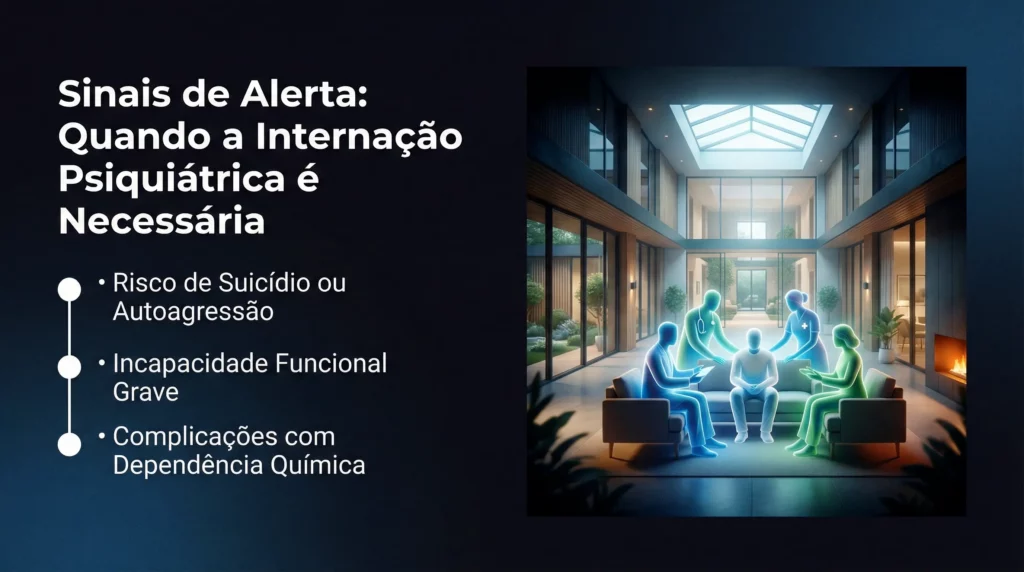 Embora a grande maioria dos casos de TAG e Síndrome do Pânico seja tratada em regime ambulatorial (consultas regulares), existem situações extremas onde uma internação psiquiátrica em uma clínica especializada se faz necessária. Isso geralmente ocorre quando: